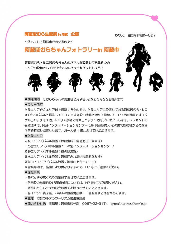 さらに、生誕祭とあわせて「阿蘇ほむらちゃんフォトラリー in 阿蘇市」も開催されます!!
