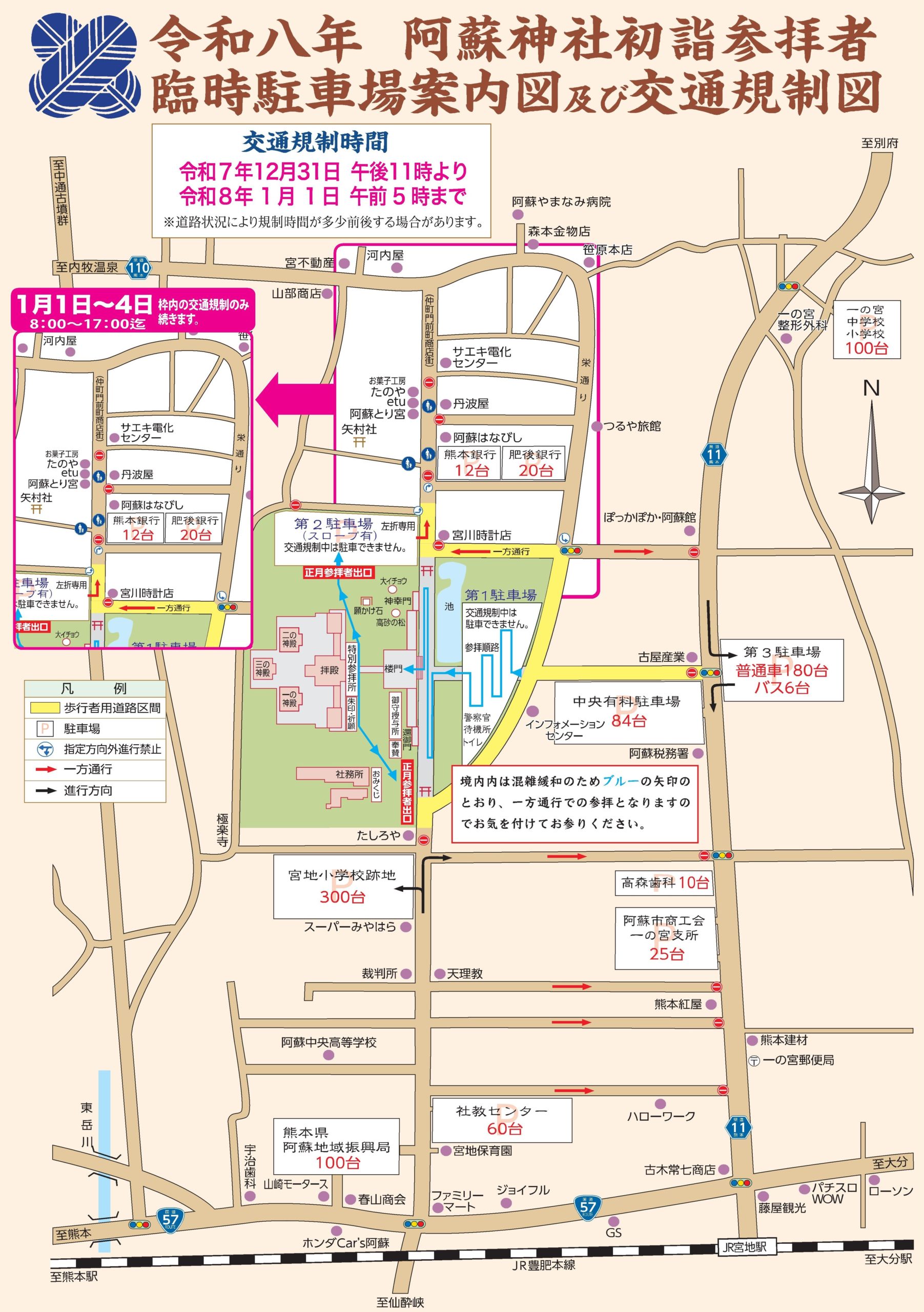 【令和8年度】阿蘇神社の初詣に伴う臨時駐車場及び交通規制のご案内